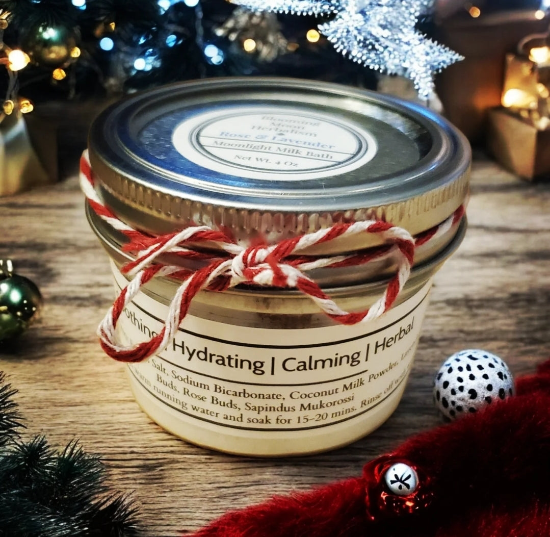 Each jar is filled with delicate blossoms and nourishing botanicals that swirl beautifully through warm bath water, creating a moment of calm, comfort, and gentle self-care. Perfect for gifting, holiday pampering, or treating yourself to a quiet evening ritual.